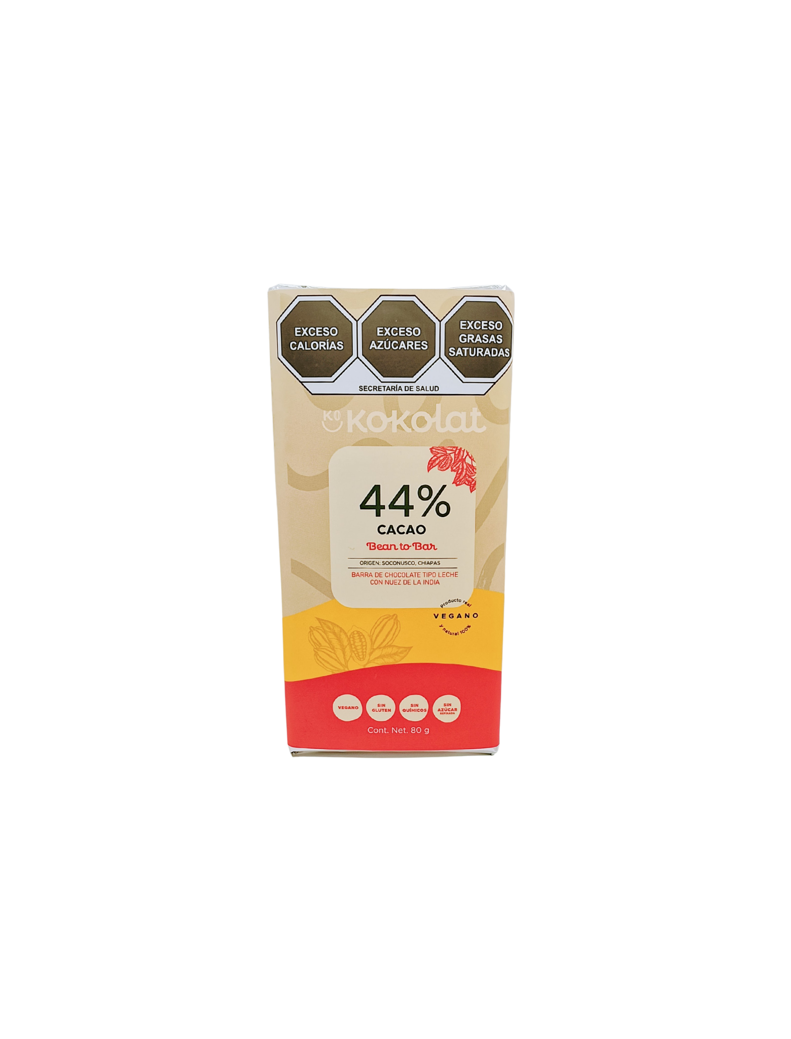 Cacao, Azucares añadidos, (Azucar de coco organico), Manteca de cacao, Puede contener trazas de cacahuate.