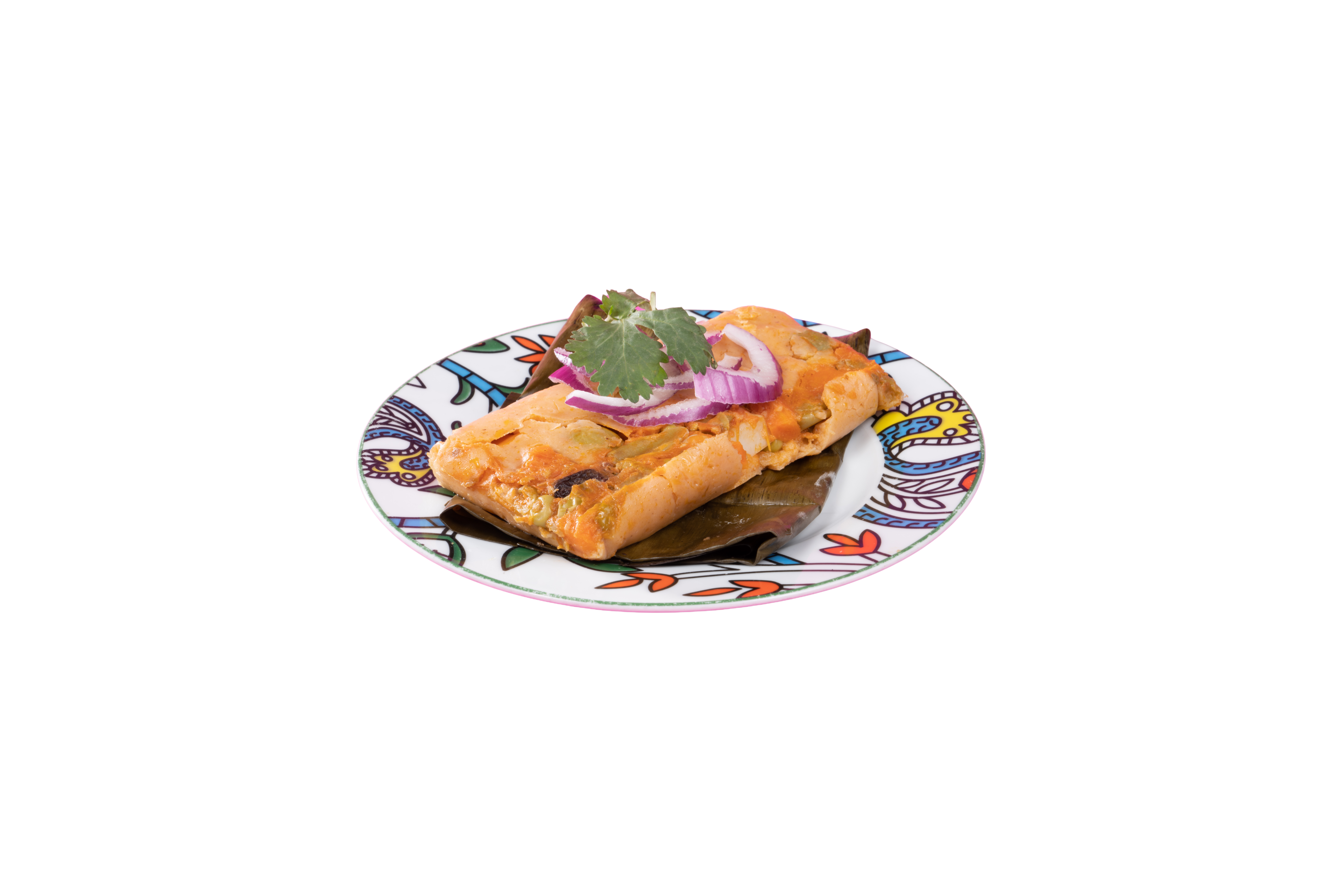 Deliciosos tamales veganos envueltos en hoja de plátano.