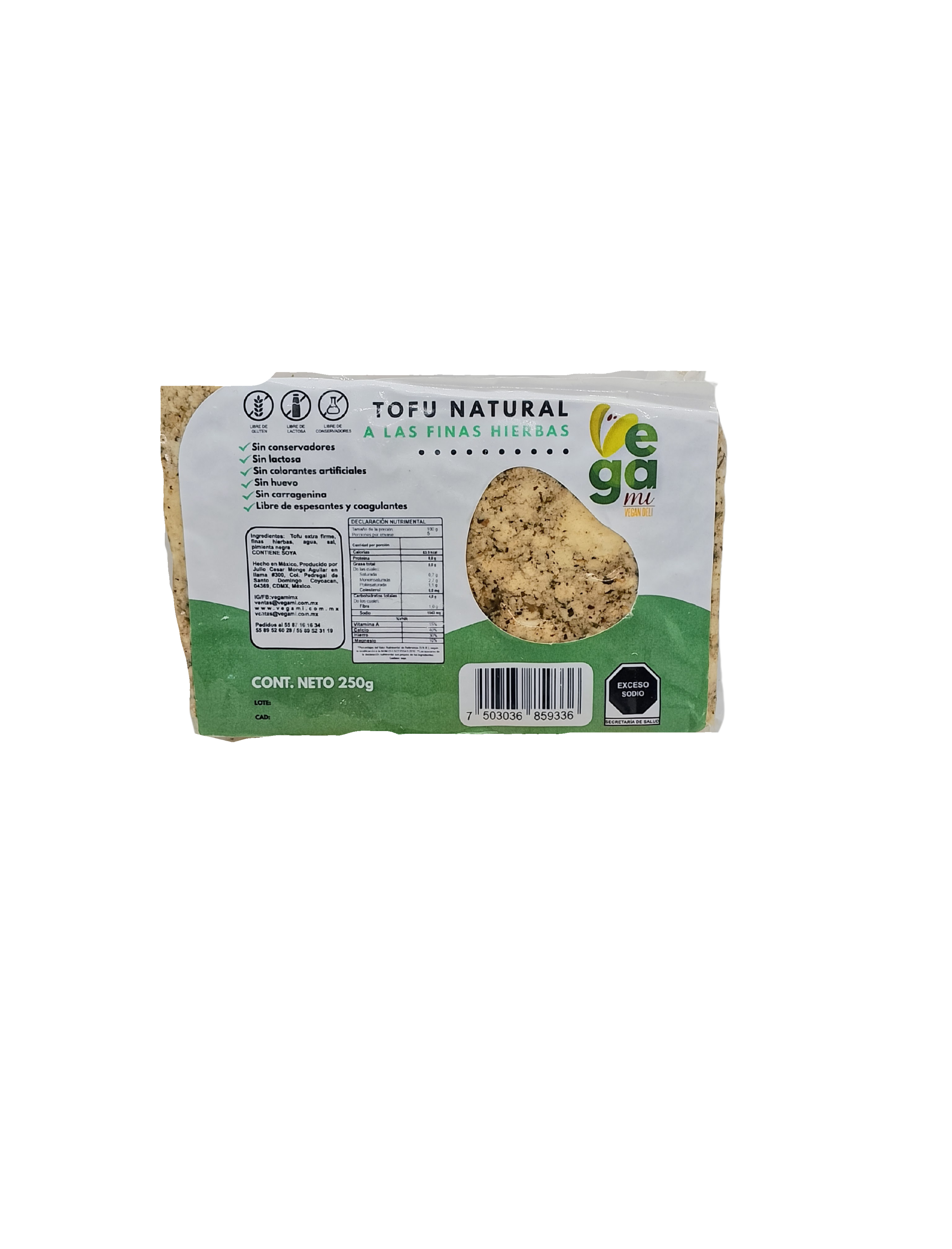 Tofu extra firme, hierbas finas, agua, sal, pimienta negra,