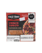 Sabor Tomate ahumado: Agua filtrada, gluten vital de trigo, pasta de tomate, aceite de cártamo prensado por expulsor, ajo, extracto de malta de cebada, extracto de levadura (levadura, sal, azúcar de caña), pimentón (color), sal marina, harina de trigo, lentejas, ajo deshidratado, azúcar de caña cultivada, vinagre, copos de trigo, especias, sabor a humo natural.Contiene: Trigo. Fabricado en una instalación que procesa frutos secos.